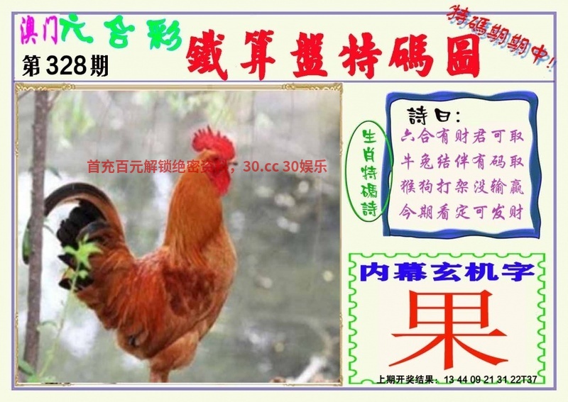 | 323期:七肖中特【马兔龙猴鸡羊猪】开:鸡09中 | |||